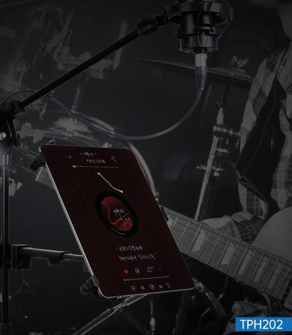 TPH202平板電腦支架,橫桿長度可在15-19cm之間自由伸縮,滿足不同人群觀看樂譜或直播距離需求。