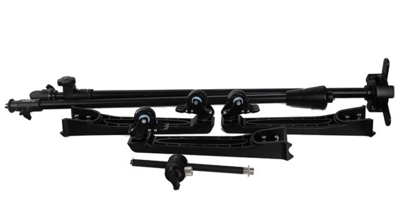 支架中的三腳底座、橫桿、支撐桿可拆卸收攏,放入包裝內(nèi),快速方便,不占空間。