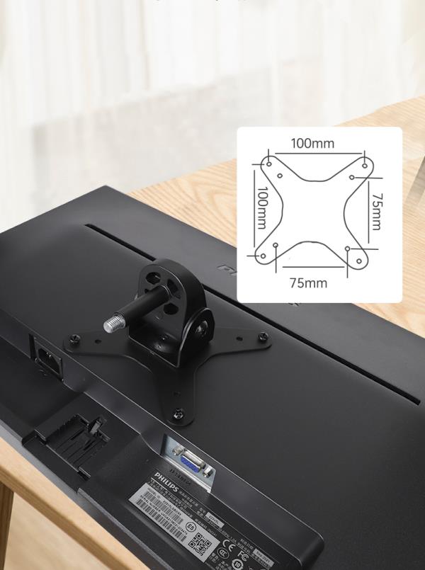 It features two distance thumbscrew hole 100*100mm and 75*75mm. According to your own screen size to choose the proper one.