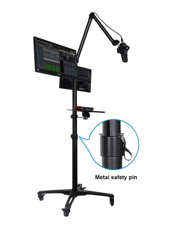Stand with wheels offer you a easy environment. It allows you to hang 2 screen at the same time also providing you a broadcasting stand hole at the stand top. It is an ideal choice for musicians, video maker etc.
