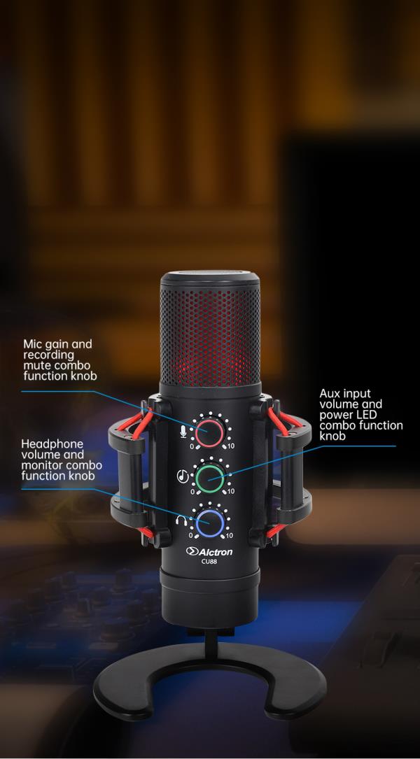 Integrated mic gain, mute, volume, power LED, monitor indicator etc function into one body combining tech and beauty.